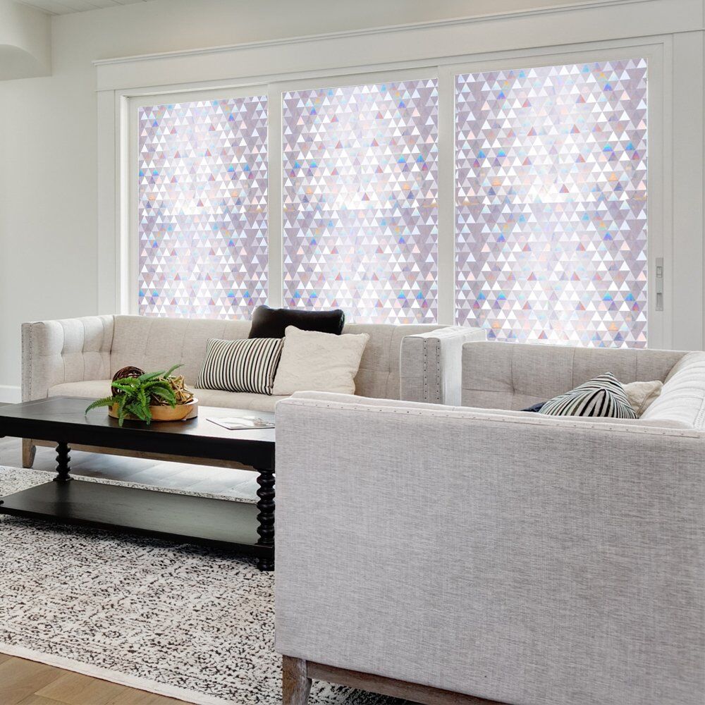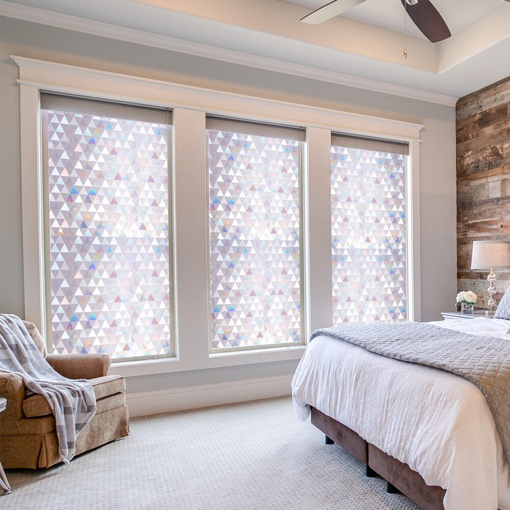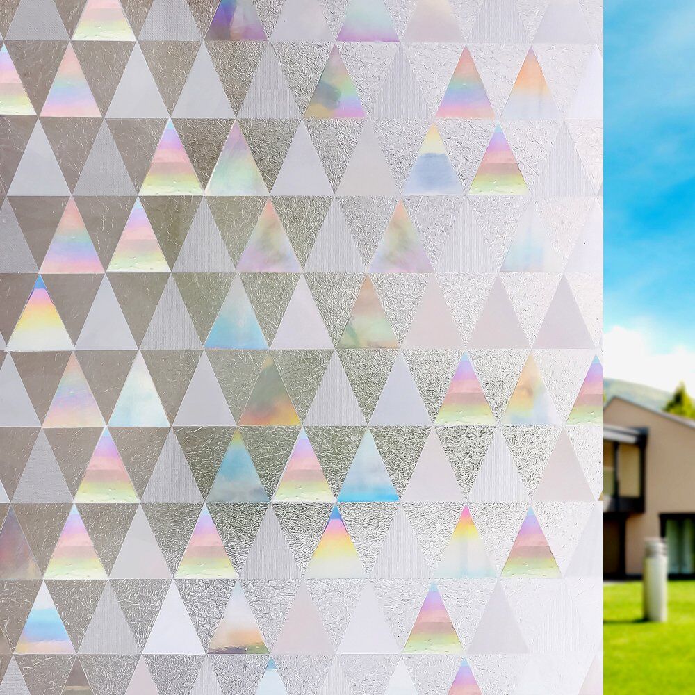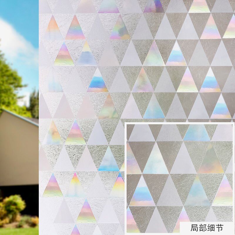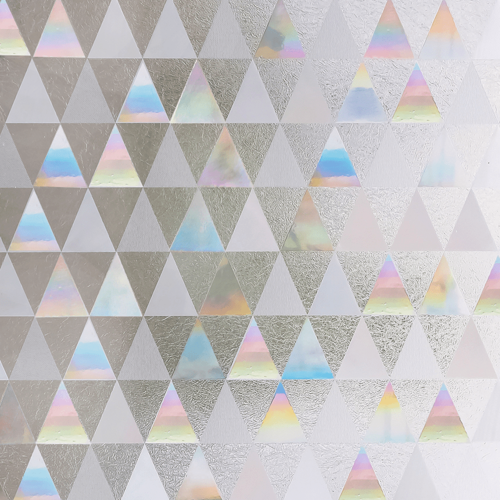 The pattern of stained glass window film looks like checkerboard of triangles. The decorative window film creates the gorgeous rainbows dancing on the ceiling or floor when sunlight shines, greatly enhancing the decoration of your home style